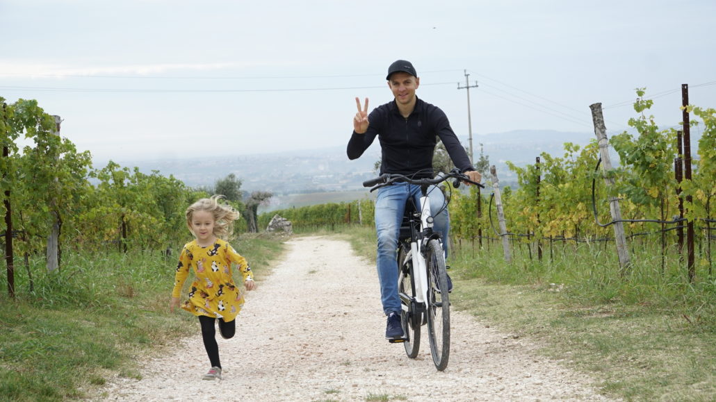 Pakkisime oma väikese pere väikesed kompsud kokku, kuid ratast kaasa ei võtnud- ainuüksi see fakt tegi reisi automaatselt ainulaadseks. Plaan oli avastada paiku ja tunda maitseid, mida eeskujulik spordimees hooaja sees liiga tihti lubada saa. Märksõnad Amarone, Valpolicella, Franciacorta ütlevad asjatundjale mõndagi. Muidugi sai eesmärgiks ka Põhja-Itaalia restoranide rikkalik toidukaart üle vaadata. Kui sul juhtub peres olema väike põnn, siis tead, et makaron on alati teema. Selle reisi puhul pidasime jahudieedist isegi nii põhjalikult kinni, et vahest sai pastat kaks korda päevaski söödud. Johanna oli asjaoludega igati rahul ja ühekülgse menüü kohta kaebust ei esitanud. Paaril hommikul, viibides Sant Ambrogio di Valpolicella nimelises külas, laenutasin majutuse omanikult (sportlik preili, mitte mõni pahur mõisateenija) korraliku elektrijalgratta ja tuuritasin tunnikese ümberkaudsetes külades. Parasjagu toimunud viinamarjakorjamine ei jätnud taludest mööda sõites kahtlust, kus magusast marjast toitvat nestet pressiti. Iga paari kilomeetri tagant hõljus õhus nina kõditav veiniaroom. Veini kirjeldamisel on täiesti okei kasutada selliseid argiseid sõnu nagu näiteks „sõnnikune“ ja „puidune“ aga sealne lõhn oli pigem enam-vähem täpselt nagu „aurav piimašokolaadi fondüü“.
